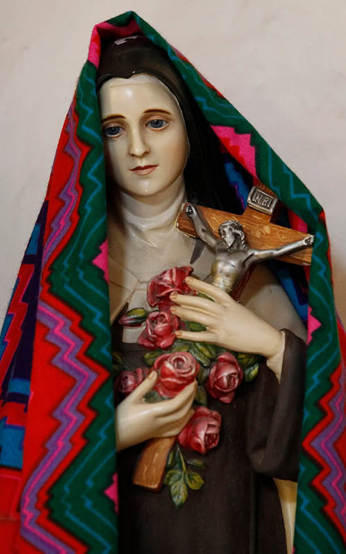 A statue of St. Therese of Lisieux holding a crucifix and flowers is situated at St. Anne Mission Church in Acomita, New Mexico, on the Acoma Indian reservation. (OSV News)