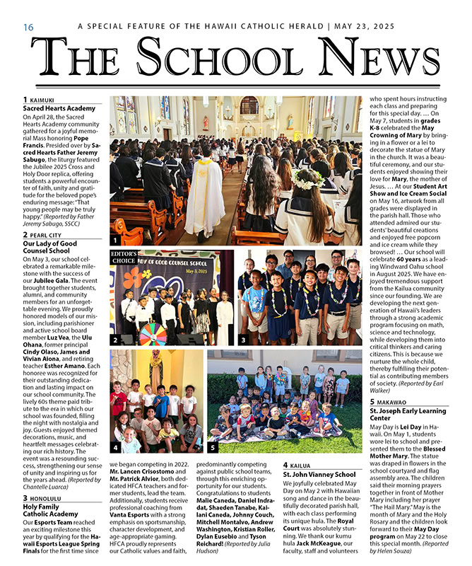 The School News: May 23, 2025 05/21/2025 by Hawaii Catholic Herald Click here to read the latest edition of The School News.