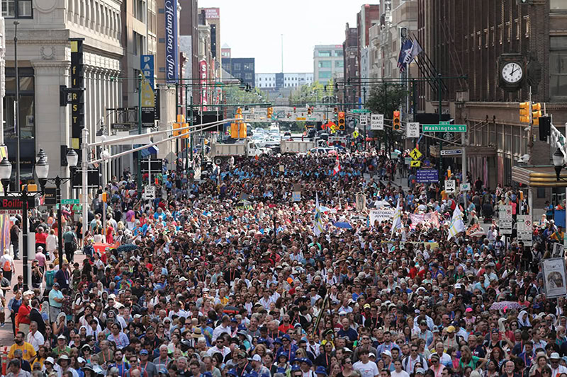 Thousands of pilgrims joined the final Eucharistic procession of the National Eucharistic Congress on July 20 in downtown Indianapolis, Indiana. (Bob Roller / OSV News)