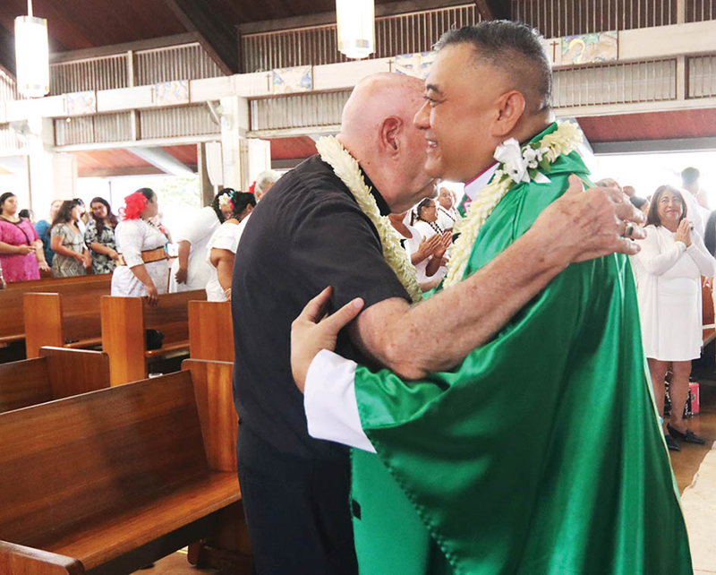 A trailblazing church leader from American Samoa received a warm welcome last month as he spent several days with Hawaii’s Samoan Catholic Community, filling a week with fellowship, conversation and a final Mass and celebration.
