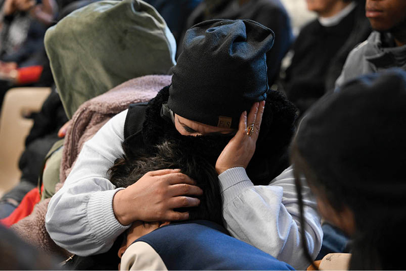 A woman and child attended Pope Francis’ Mass for the World Day of the Poor Nov. 17 in St. Peter’s Basilica. (Vatican Media / CNS / 2024)