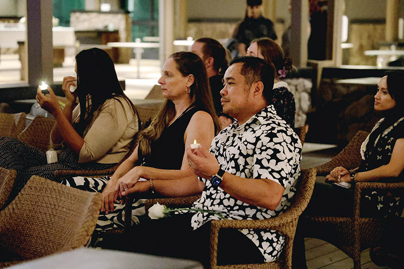 As the sun set on the outdoor lanai, family members honored their loved ones who have passed by announcing their names and placing a memorial rose in a bouquet.