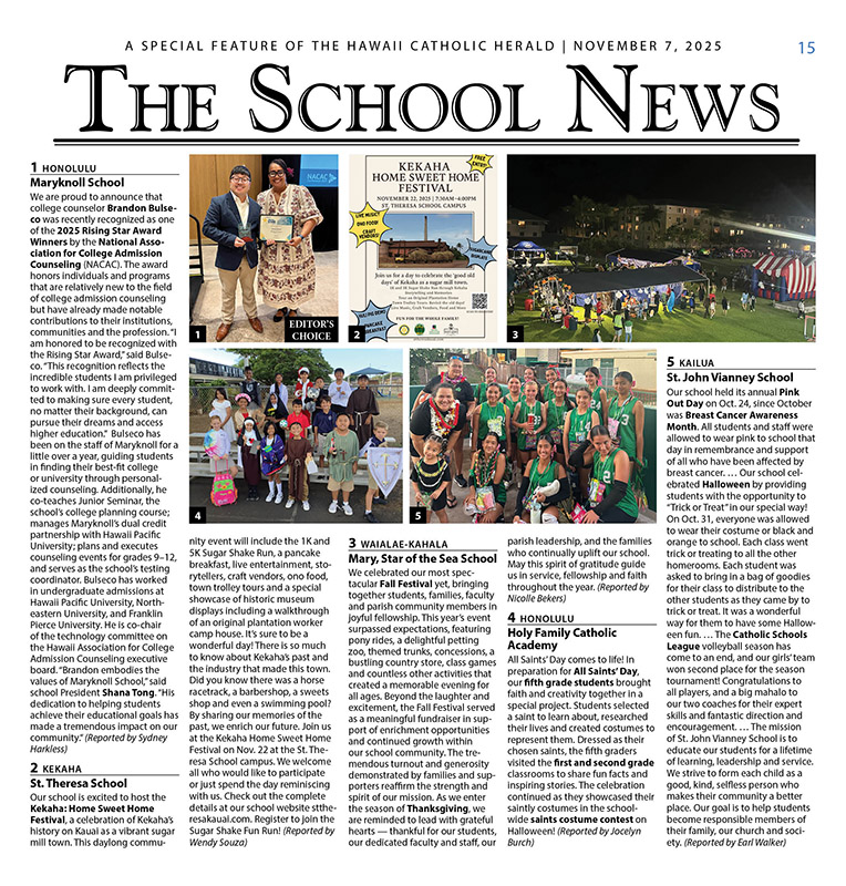 The School News: Nov. 7, 2025 11/05/2025 by Hawaii Catholic Herald See below for the latest edition of The School News.