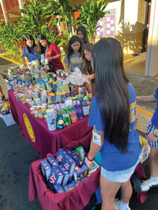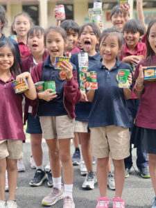 Above: Maryknoll School first graders displayed some of the canned goods they helped collect. Maryknoll high school students looked over the items donated by the Maryknoll community and destined for the food pantry at St. Pius X Church nearby. (Photos courtesy Father Ese’ese “Ace” Tui)