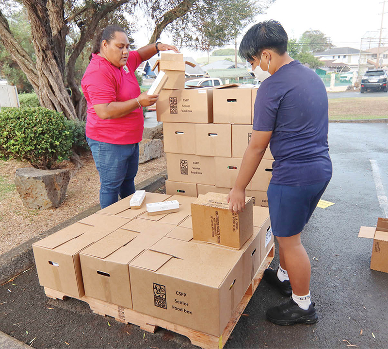On Molokai, St. Damien of Molokai Church distributes about 163 boxes to seniors on the third Thursday of the month through the Maui Food Bank. On Friday, anyone can line up for a box.