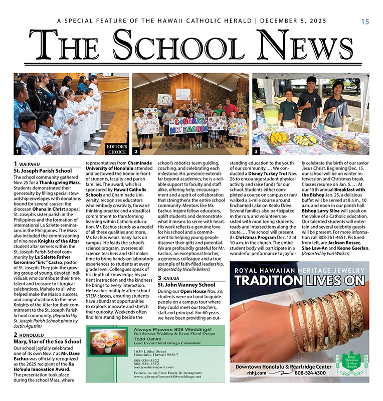 The School News: Dec. 5, 2025 12/03/2025 by Hawaii Catholic Herald See below for the latest edition of The School News.