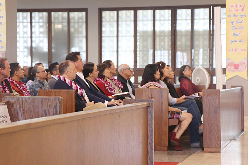 Before Mitchell’s talk, which she delivered near the end of Mass, Bishop Silva in his homily said that Hawaii is faced with many complex challenges today — in addition to a dearth of homes and quality health care, there are also fear and anxiety among immigrants, wars and a civil discourse that “has become anything but civil.” Creating an effective response requires improving and developing laws and policies to address these issues.