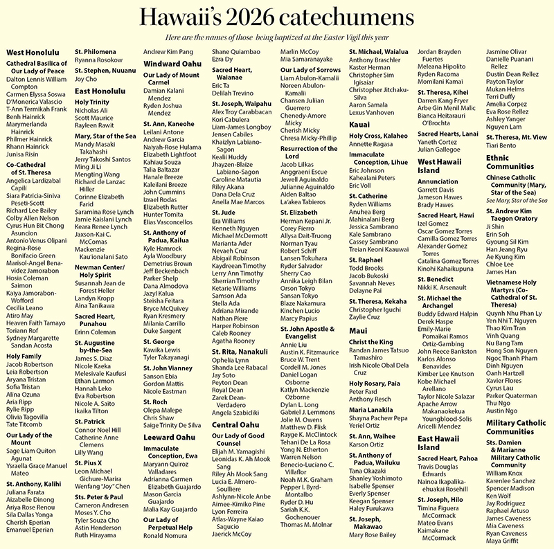 List: Hawaii’s 2026 catechumens
