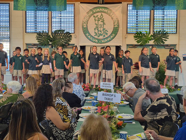 The Kailua community gathered Jan. 25 to celebrate the 60th anniversary of St. John Vianney School at its 15th annual “Breakfast With the Bishop.” The special guest at the Sunday morning event was Bishop Larry Silva.