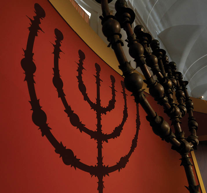 Above: A menorah and its shadow are seen in one part of an exhibition on the menorah at the Vatican. (CNS file photo / 2017)