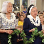 Top, Sister Charlene Epil, left, and Sister Jovita Augustin, both Sisters of St. Francis of the Neumann Communities, carry a maile lei to drape over the box holding the remains of St. Marianne at the Oct. 25 Mass in the Co-Cathedral of St. Theresa celebrating the 10th anniversary of her canonization in Rome. Above, the […]