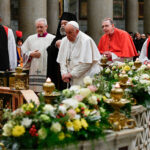 By Carol Glatz Catholic News Service VATICAN CITY — Like a giant Tinkertoy construction, a skeletal tower of scaffolding slowly inched its way up the twisting bronze columns of the baldachin over the main altar of St. Peter’s Basilica. Workers on the ground picked through piles of shiny metal platforms, poles, clamps and couplers to […]