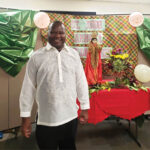 Father Boniface Sakala, parochial vicar of St. Jude Church Kapolei, proudly wears his barong tagalog, a traditional Filipino shirt, gifted to him by one of the members of the parish Filipino Catholic Club. Father Sakala attended the FCC annual fellowship on Jan. 14. (Photo courtesy of St. Jude Parish)