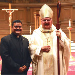 Hawaii seminarian Alfred Guerrero stands by Bishop Patrick McGrath of the Diocese of San Jose who presided at Guerrero’s Rite of Candidacy Mass Nov. 10, at St. Patrick Seminary in Menlo Park, Calif.